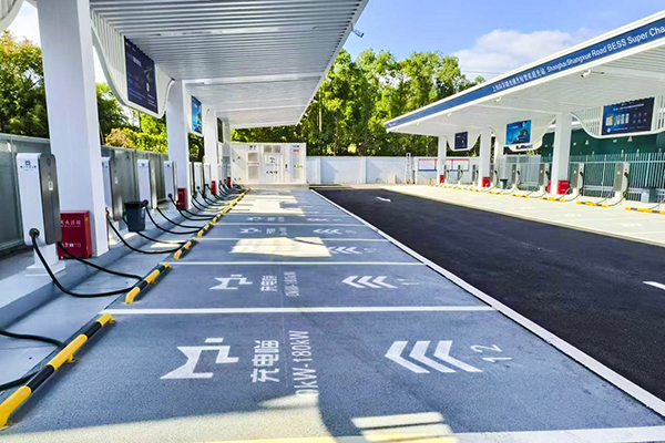 上海尚学路光储充检超级充电站位于嘉定区尚学路988号,周边拥有多个大型居民小区,且毗工业园区、物流园、绕城高速,周边车流量巨大,新能源汽车充电、车辆电池检测潜在需求较大。新站点占地面积约2000㎡,配置了52台带有车辆电池检测功能的1000V 180kW直流快充桩,可实现1000V高压快充,并根据车辆的充电需要,柔性分配每根充电枪的最大充电功率,在符合充电桩和车辆电池技术适配的前提下,轻松实现七八分钟补充续航200km,普通车辆也可在半小时充到80%的电量。同时,充电桩还能额外提供电池检测服务,无需拆卸车辆电池即可实现电池在线实时检测,帮助车主提高用车安全系数。